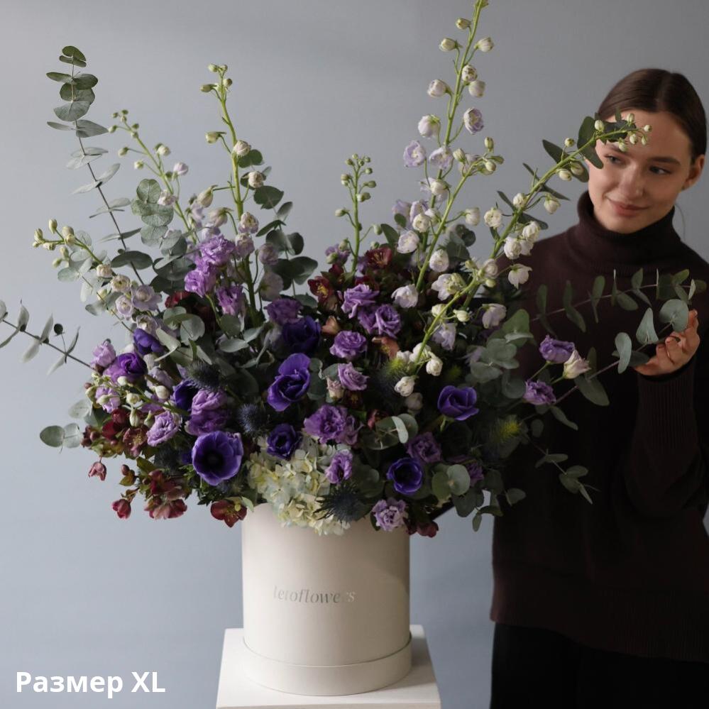 Авторские букеты в коробках уникальны и не повторяются точь-в-точь. На фотографиях примеры букетов, выполненные нашими флористами, – каждый неповторим.