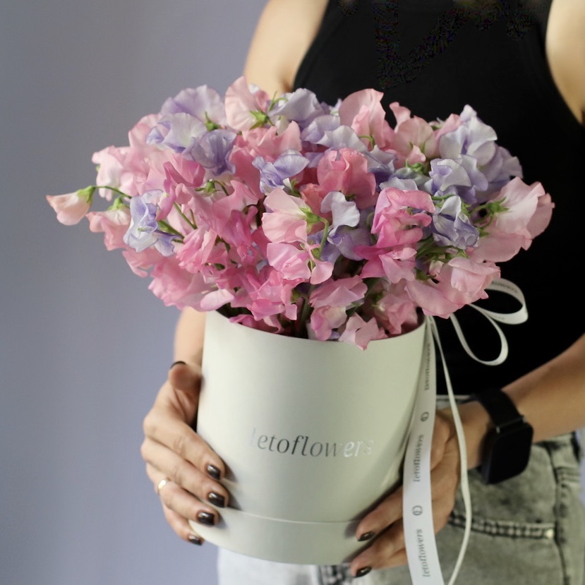 Букет из душистого горошка в шляпной коробке