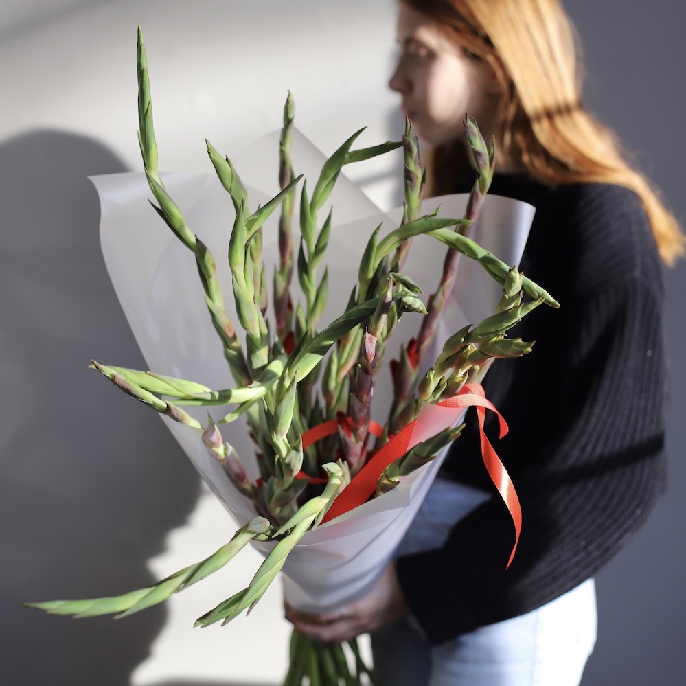 - цветом лент и зеленью. Флорист подберет ленты и зелень, которые лучше всего сочетаются именно с вашим букетом. Если у вас есть пожелания на этот счет, мы учтем их.