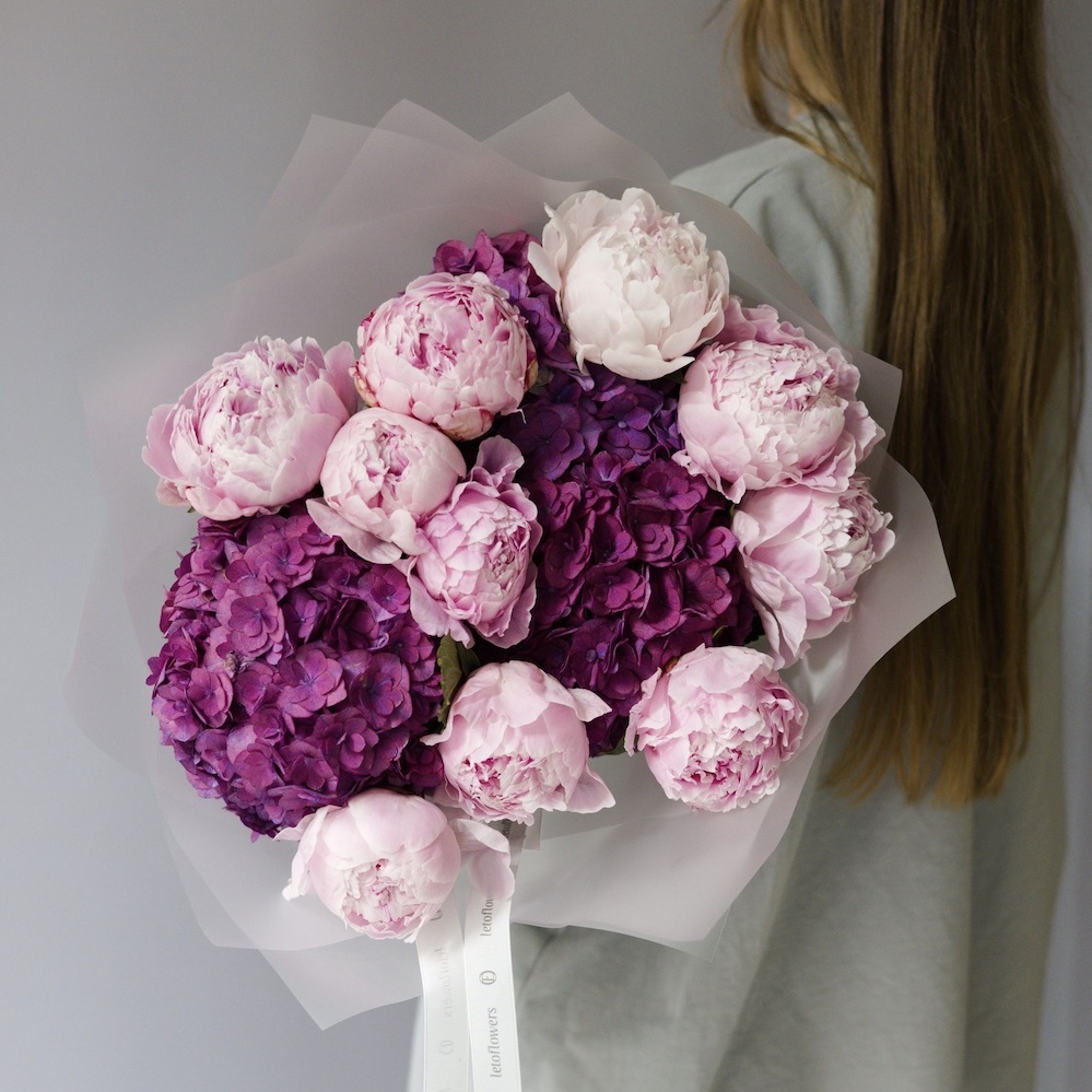 Букет из пионов и гортензий, яркий