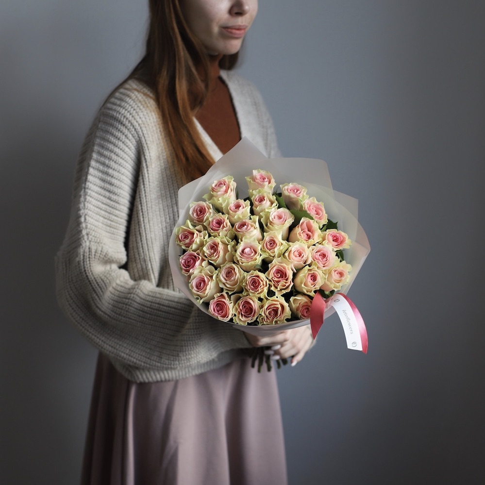 - цветом лент и зеленью. Флорист подберет ленты и зелень, которые лучше всего сочетаются именно с вашим букетом. Если у вас есть пожелания на этот счет, мы учтем их.