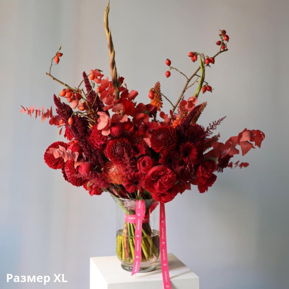 Авторские букеты в вазах уникальны и не повторяются точь-в-точь. На фотографиях примеры букетов, выполненные нашими флористами, – каждый неповторим.
