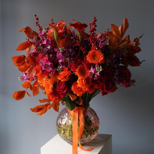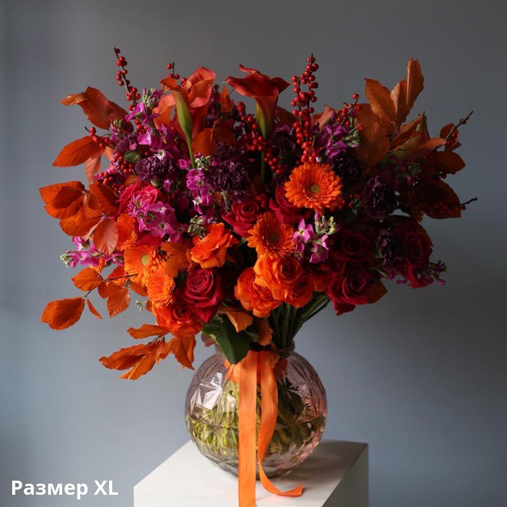 Букет из сезонных цветов в вазе Осенний