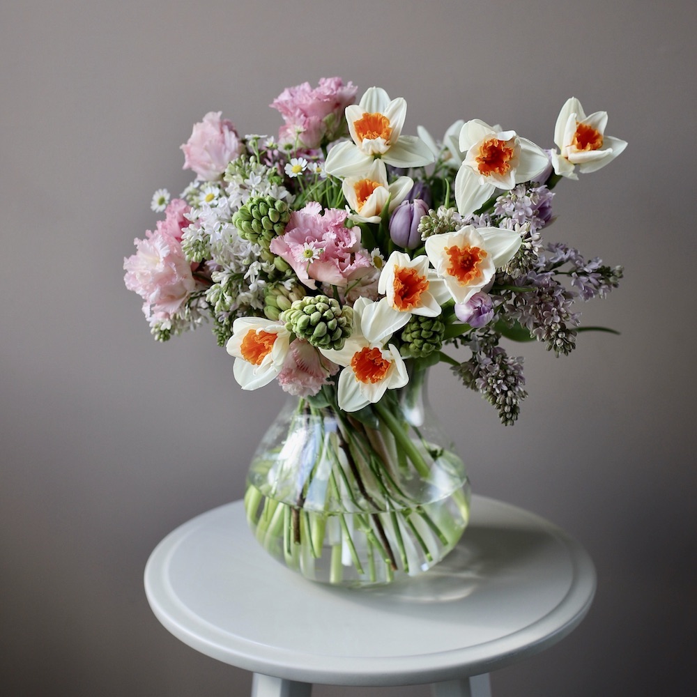 Букет из сезонных цветов в вазе Весенний