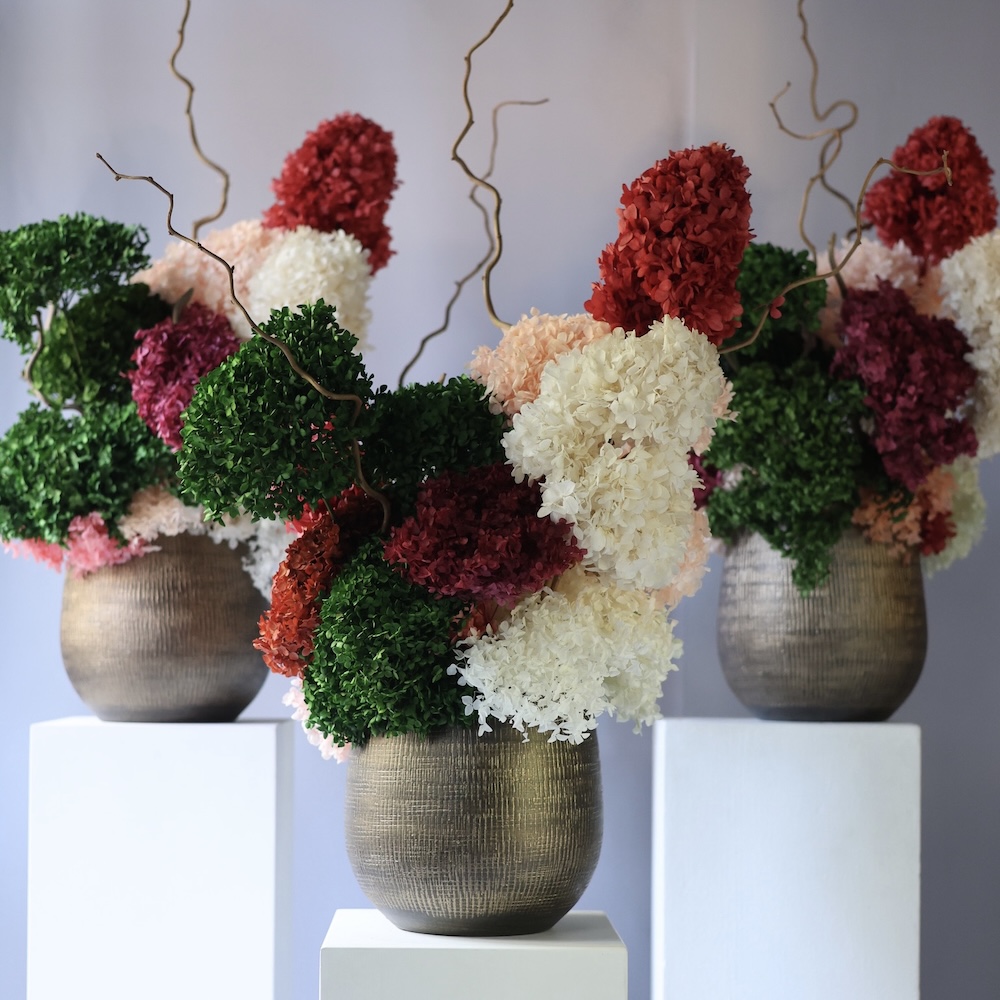Композиция из стабилизированных гортензий в кашпо