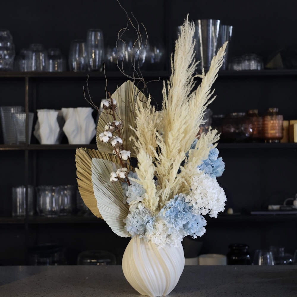 Мы можем собрать «Песчаную» под ваш запрос: разные оттенки, высота и форма кашпо. Изготавливается на заказ за неделю.