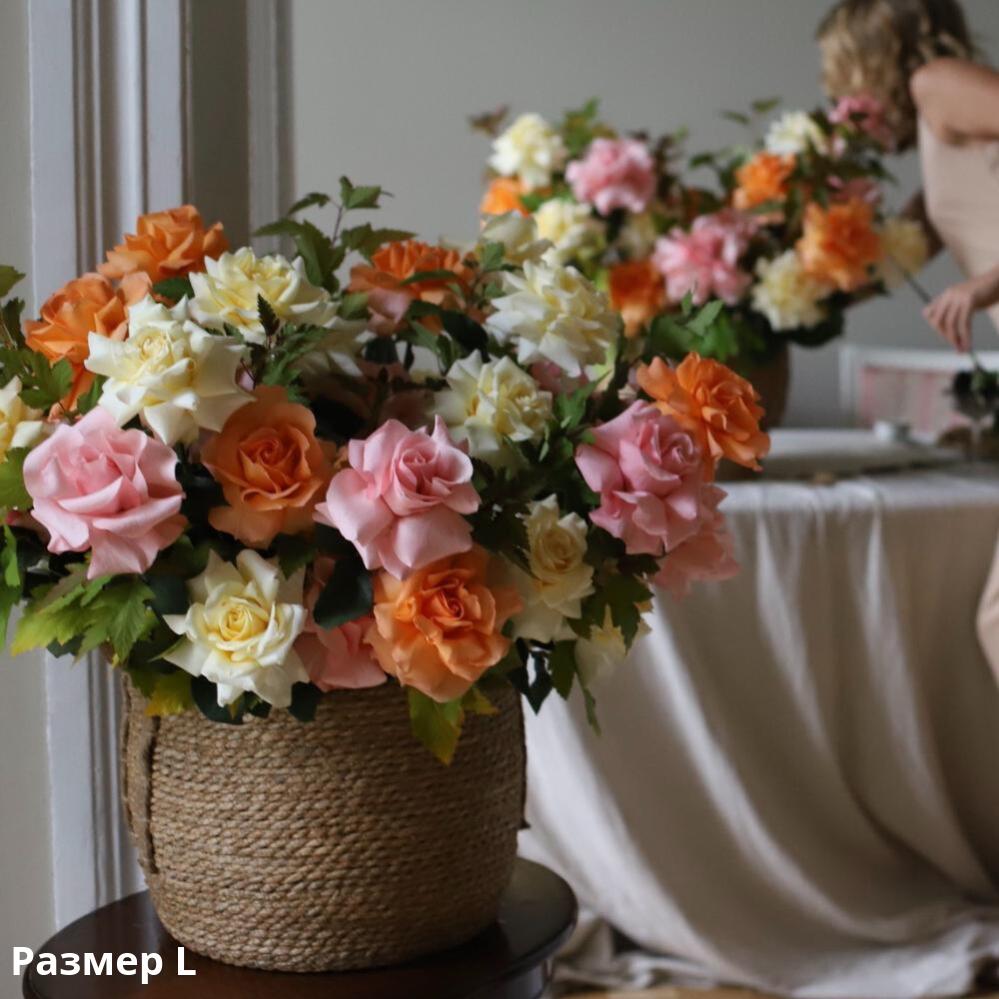- корзиной. Флорист подберет корзину, которая лучше всего подходит для вашей композиции. Если у вас есть пожелания на этот счет, мы учтем их.