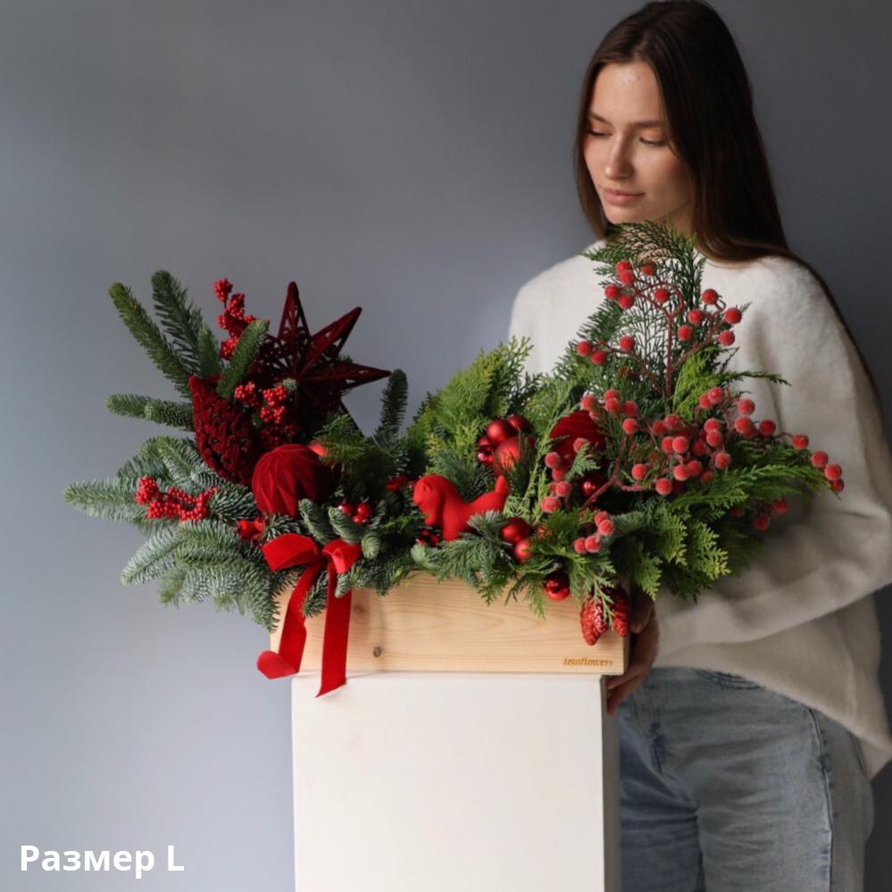 Новогодняя композиция в ящике, гамма "Красный бархат"