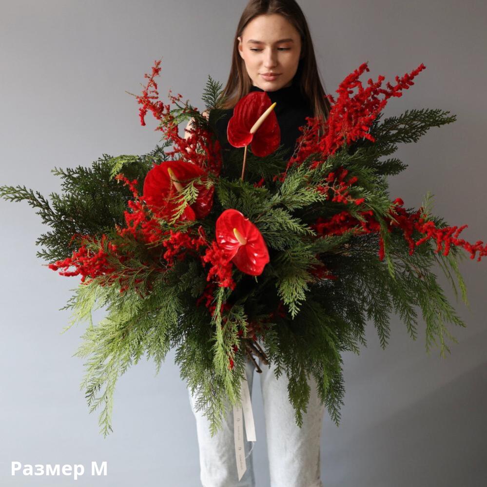 M: 3 антуриума, хвоя, сухоцветы